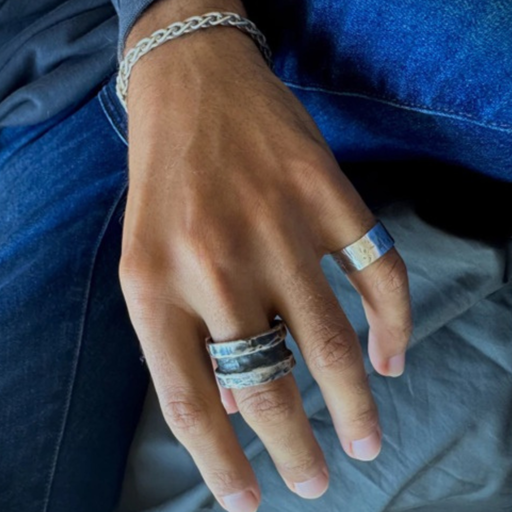 Anillo grueso de plata 925 con baño ennegrecedor. Se puede hacer también con terminación brillante y pulida.